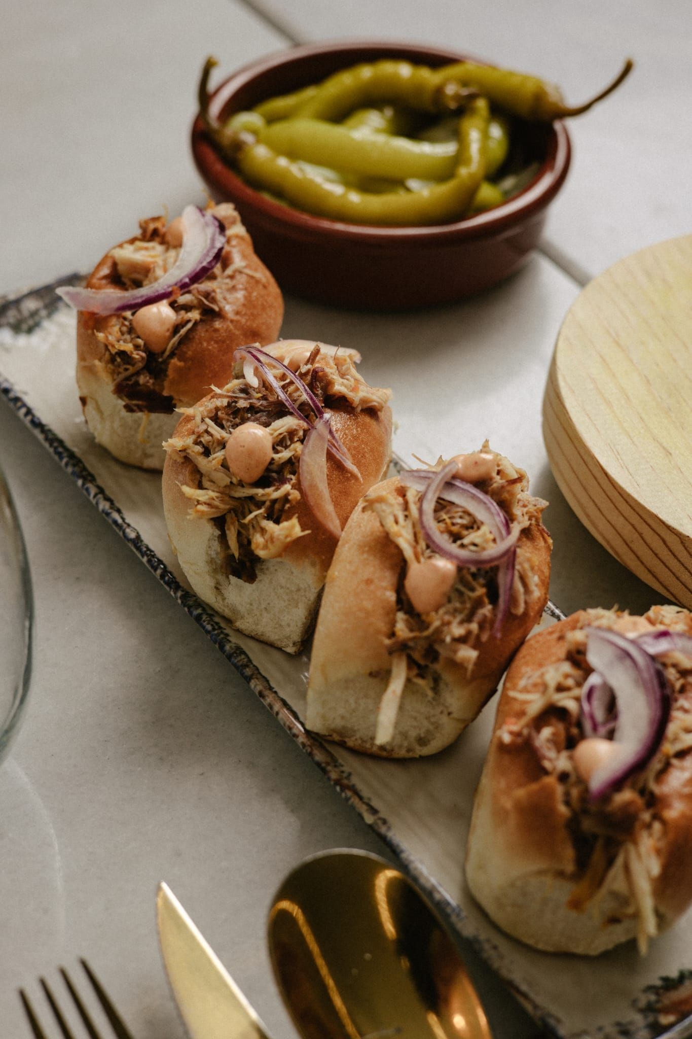 El mas llamativo es nuestro Brioche de Ropa Vieja con Mayonesa chipotle y cebolla roja encurtida en naranja. quiza uno de los bocados mas atrevidos de toda nuestra propuesta, pero a la vez es la forma perfecta de empezar esta comida. El Primer Vuelco